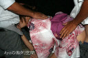 人目につかない空地に連れ込まれて、パンストを破られ辱しめを受ける。