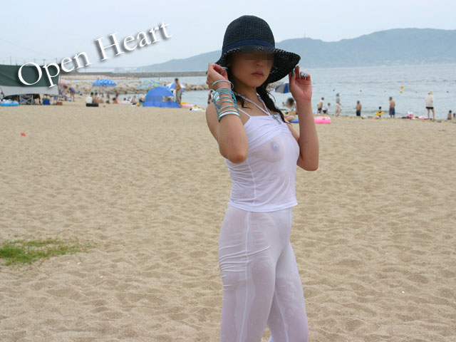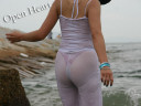 水着姿ばかりの海水浴場で、真っ白なスケスケ白ピタパン&キャミで俳諧(ーー;)
