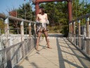 寒い時期なので遊歩道でキャミ露出しましたが、