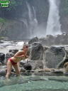 洞窟温泉の続きです!外に出るとそこは巨大な滝が!!