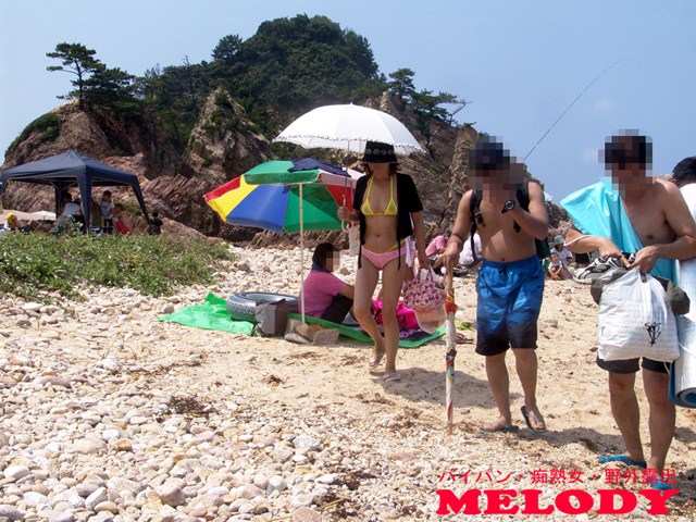 鳥取のビーチで食い込みの激しい水着を着て海水浴に来ている人たちの