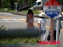 スパイダースケスケワンピース水着でサイクリングロードで露出。