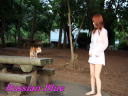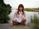 川原に遊びに行った写真です。シースルーの服を着ても、周りからは上半身丸見えでした(^^)