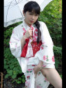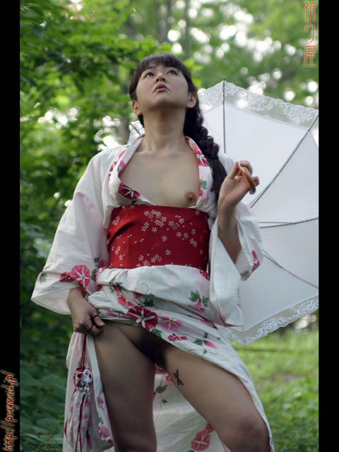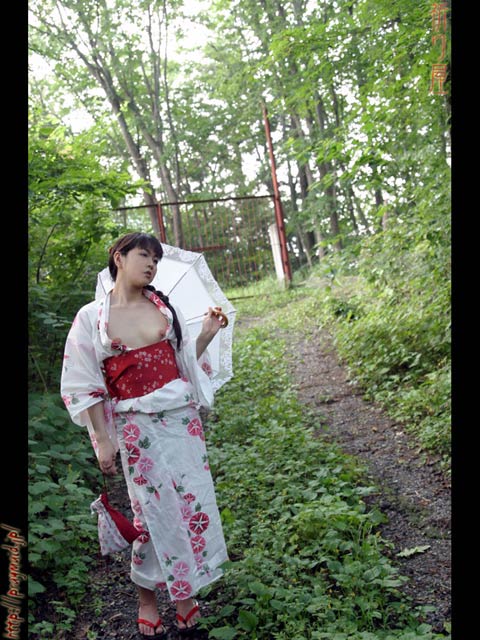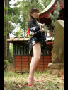 神社の境内で夏らしく浴衣脱ぎ脱ぎです♪