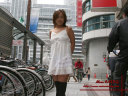 ランジェリー姿で休日のオフィス街をお散歩してきました♪