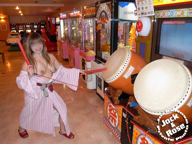 温泉旅館のゲームコーナーで浴衣をはだけたまま遊んでみましたぁ♪
