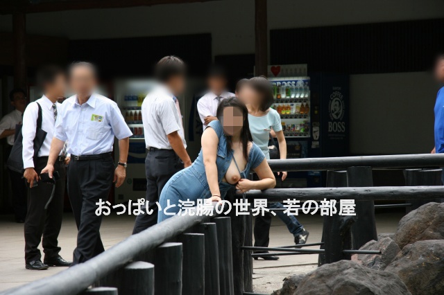 温泉地の○○地獄でおっぱい出しちゃいました。人が結構いて、ドキドキでした♪