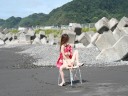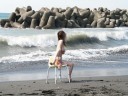 台風がきている海で、波を警戒しながらのオリジナルエロ椅子、露出オナニーo(~○~;)o ハァハァ!